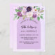 Violett, lavendelfarbener Hintergrund und Bogenrahmen. Die Einrichtung ist mit violetten und lila Blume und Pflanzen in Aquarellen gestaltet. Personalisieren Sie Ihren Namen und Ihre Party-Daten und fügen Sie diese hinzu.