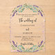 Für eine elegante und romantische Hochzeit. Ein durchsichtiger, runder bogenförmiger Hintergrund mit Lavendel-Blumen, Eukalyptusgrün und violetten Imitaten Glitzern. Personalisieren Sie Ihre Namen und Details und fügen Sie diese hinzu.