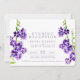 Hübsch botanische Aquarell Brasilianische Blume duranta violette Blumen Abend Probe Empfang vor der Hochzeit Einladungen. Schöne Einladungen, ideal für ein botanisches lila oder tropisches Gartenabendessen. © Original Aquarellmalerei Kunst und Design von Sarah Trett www.sarahtrett.com für www.mylittleedenweddings.com