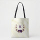 Luxuriöse Royal-Violett-Blumen mit goldenen Blätter auf Marmorboden Tote Tasche