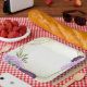 violette Blumen grüne Blätter Hochzeit Pappteller