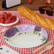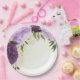 violette Blumen grüne Blätter Hochzeit Pappteller