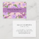 Elegante, stilvolle und raffinierte Visitenkarten mit violetten Blumen. Modernes Design, perfekt für Floristen, Blume und Blumenlieferungen.