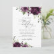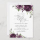 Mit dieser charmanten Hochzeitseinladung laden Sie Freunde und Familie in Stil und Set ein. Das Design zeichnet sich durch lila Aquarell-Blume und Grünpflanzen auf weißem Hintergrund aus.