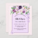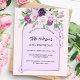Rosa Hintergrund und Bogen. Die Einrichtung ist mit violetten und lila Blume und Schmetterlingen in Aquarellen geschmückt. Personalisieren Sie Ihren Namen und Ihre Party-Daten und fügen Sie diese hinzu. 1 Blatt = 1 Einladung mit Druckkante bis Kante.