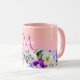 Violette Stiefmütterchen Blume auf Pfirsich mit Mo Tasse