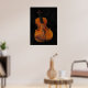 Dieses Poster präsentiert ein klassisches Stillleben einer eleganten alten Geige. Dieses anmutige Instrument ist im Wesentlichen eine hölzerne Kiste mit abgerundeten Enden, zwei anmutigen Löchern und einem engen Zentrum. Die vier Sets von Strings reichen von einem Streichhalter am unteren Körperteil über eine erhöhte Brücke bis zum Ende des schmalen Halses, oder von einem Griffbrett, wo die vier Fäden in einen Pegbox eingefügt und dort mit Pegs gehalten werden. Die Pegs werden zur Einstellung der Geige verwendet. Wenn der Bogen über die Saiten am Geigenkörper gezeichnet wird, erzeugt er unglaubliche, magische Musik! Die prächtigen, goldbraunen, fast orangefarbenen Farbtöne werden durch einen anmutigen, schwarzen Samtstoff Set.