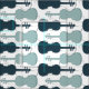 Stoff mit Violine-Thema in Blautönen.