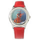 Kinderuhr aus Edelstahl mit rotem Lederarmband