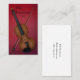 Eine wunderschöne Visitenkarte mit einer Trompe l'oeil Violine Viola auf einem blutroten Grunge texturiert Hintergrund. Es ist voll von Drama und Zuversicht, perfekt für den leidenschaftlichen und virtuosen Musiker. Die Rückseite dieser Karte bietet Platz für 7 Textzeilen, um sich als Darsteller, Dirigent oder Lehrer zu fördern. Der Geigenbogen auf der Vorderseite kann das Ende der langen Nachnamen verschleiern, in diesem Fall sollten Sie Ihren vollständigen Namen mit Ihren Kontaktinformationen auf der Rückseite angeben.
