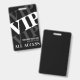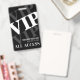 Alle Zugang moderne schwarze Hintergrund VIP-Abzeichen. Dieses VIP-Abzeichen eignet sich perfekt für Modenschauen, Konzerte, Konferenzen, Lautsprecher oder andere Veranstaltungen. Es ist so konzipiert, dass sich die Gäste wie zu Hause fühlen. Beide Seiten haben einen schwarzen Hintergrund. Die Vorderseite zeigt "VIP" in Weiß, diagonal mit einem dunkelgrauen Schatteneffekt dahinter angezeigt, wodurch die Tiefe erhöht wird. Rechts sind Veranstaltungsname und Datum für ein modernes Aussehen positioniert, unten steht "All Access". Die Rückseite ist ebenfalls schwarz und links. Vollständig anpassbar, können Sie Text, Schriftart und Farben an das Thema Ihres Events anpassen.