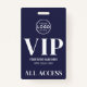 VIP Your Logo Black White All Access Special Event Badge. Great for fashion shows, concerts, large special events like conferences, speakers, and even birthday parties or any occasion where you want your guests to feel special. This badge features a simple, modern, yet elegant design with a navy blue background. There’s a spot at the top to add your company name or logo.