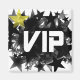 Die Hektik verblasster und gebrochener schwarzer Sterne, gebündelt zu schaffen, einen einzigartigen Raum alten Grafik mit "VIP" geschrieben in der Mitte in einem modernen Ticketstub weißen Schriftart. In der links oberen Ecke kann man ein verblassenes Foto eines goldenen Sterns sehen.