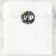 Die Hektik verblasster und gebrochener schwarzer Sterne, gebündelt zu schaffen, einen einzigartigen Raum alten Grafik mit "VIP" geschrieben in der Mitte in einem modernen Ticketstub weißen Schriftart. In der links oberen Ecke kann man ein verblassenes Foto eines goldenen Sterns sehen.