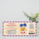 Vergnügen und auffällige Party Einladung in der Altersversorgung mit einem Reisethema. Die Einladung ist wie ein traditionelles Flugzeug-Ticket geformt und hat einen zeichn mit Palmen und der Sonne. Das Design ist großartig, um Tage der Entspannung vor uns zu symbolisieren. Der Wortlaut folgt dem Thema Reisen. Fügen Sie Ihre eigenen Party-Details hinzu.