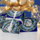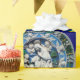 Elegante klassische, lebendige Renaissancekunst , Meisterwerk aus Bottega della Robbia ( Florenz - Italien ) in weißen, blauen, grünen, braunen Farben. Eine antike Krippe, stabil, Tiere, Bäume, geflügelte Kirschen in blauem Himmel auf einer gelben, grün dekorativen Blumenkrone mit einem leuchtenden 3D Gem Stein.