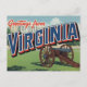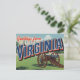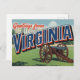 Celebrate the Old Dominion State with this historical retro "Greetings from Virginia" postcard. This classic large-letter design highlights Virginia's crucial role in American history, featuring a Civil War-era cannon in the foreground and a historic capitol building (or similar landmark) in the background. This vintage travel art is perfect for history buffs, Virginia residents, Civil War enthusiasts, and collectors of Americana state souvenirs.