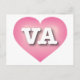Auf dieser Postkarte befindet sich ein cooles rosafarbenes Herz mit einer weiß gekalkten Mitte, in der die fett-weißen Großbuchstaben VA, die offizielle Abkürzung für Virginia, den alten Herrschaftsstifter, enthalten sind. Die Rückseite der Karte ist leer und wartet auf Ihren personalisierten Text oder Ihre handgeschriebene Stimmung.
