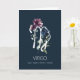Modernes, blumengeschmücktes Design des Virgo Zodiac-Symbols, das auf dem Jungfernseher basiert. Die perfekte Karte, um den Geburtstag deiner Freundin zu feiern!