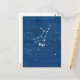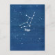 Eine Postkarte mit dem Sternbild Virgo im Nachthimmel mit indigofarbenem Waschhintergrund. Vergnügen Postkarte zu senden an einen Freund Virgo. Die anderen Sternzeichen finden Sie auf einer Vielzahl von Artikeln in meinem Shop.