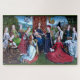 Das Kunstwerk namens Virgo inter Virgines wurde von einem anonymen Künstler gemalt, der von den Gelehrten The Master of the Legend of St. Lucy (fl. ca. 1485) genannt wurde. Das Gemälde wurde laut Archivquellen 1489 in der Frauenkirche (Niederländisch: Onze-Lieve-Vrouwekerk) in Brügge (Belgien) auf dem Altar der Rhetorikkammer der Drei Heiligen (De drie Sanctinnen): SS. Barbara, Catherine von Alexandria, und Mary Magdalene. Rhetorik-Kammern waren Bürgergesellschaften für die Werbeaktion der literarischen Künste und waren während der Renaissance in den armen Ländern sehr beliebt. + In der Mitte des Gemäldes sind die gesegnete Jungfrau Mary (BVM) und Säugling Jesus gefesselt. Hinter ihnen stehen zwei Engel, die einen verzierten Ehrentext unterstützen. Zwei Gruppen von Heiligen der Jungfrau, die meisten davon aus dem 3. bis 4. Jahrhundert, spätantike römische Märtyrer, flankieren den Thron. Auf der links Seite ist das Lesen im Uhrzeigersinn aus der unteren links Ecke des Gemäldes SS. Ursula, Apollonia, Lucy, Cecilia(?), Catherine von Alexandria und Mary Magdalene. Rechts vom Ellenbogen des BVM, im Uhrzeigersinn, ist SS. Barbara, Margaret von Antioch, Agatha, Christina von Bolsena und Agnes. [Zusätzliche Informationen über einzelne Heilige sind den Beschreibungen zu entnehmen, die ihre Grußkarten oder Postkarten begleiten.] + Image Credit (M 070): Virgo inter Virgines [in Latein; La Vierge parmi les vierges in Französisch; Die Jungfrau zwischen Jungfrauen in Englisch], vom Meister der Legende von St. Lucy (fl. c. 1435-1506/1509), Öl auf Eichenplatte, 67.3"x42.5" (171 cm x 108 cm), c. 1488, Königliche Kunstmuseen Belgiens, Brüssel, Inv. 2576. Von Wikimedia Commons {PD-Art|PD-Old-100}. Die Bilddatei wurde als frei von bekannten Einschränkungen durch das Urheberrecht, einschließlich aller verwandten und benachbarten Rechte, identifiziert.
