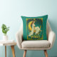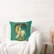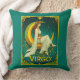 Kissen in einer Frau in fließenden weißen Gewänder, mit einer Blume im Haar, anmutig auf einem goldenen Halbmond sitzen, umgeben von Sternen. Verziertes Jugendstil-Framing mit Blume und das Wort "VIRGO" ergänzen die Himmelsbilder.