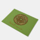 Diese Mandala wurde für das Tierkreiszeichen Virgo entworfen, das einen Peridot-Stein in der Mitte darstellt, umgeben von Elementen, die das Schild darstellen, wie das Symbol für das Schild, die Konstellation und das alchemistische Symbol für die Erde, sowie filigrane Weinreben und Weben, die alles in ein solides Bild in hellgrünen, kupfer und braunen Tönen einwickeln. Passen Sie den Text auf dieser Tür mit Ihrem eigenen bevorzugten Gruß an oder entfernen Sie ihn ganz, um eine einzigartige Dekoration für Ihren Eingang zu machen.