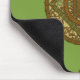 Die Mandala zum Thema Virgo besteht aus einem Peridot-Stein, umgeben von dem Symbol für das Schild, die Konstellation und dem alchemischen Symbol für die Erde unter Filigree und Weber.