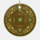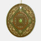 Die Mandala zum Thema Virgo ist mit einem Peridot-Stein umrahmt von dem Symbol für das Zeichen, die Konstellation und das alchemistische Symbol für die Erde unter Filigree und Weber.