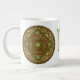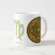 Das Motto der Virgo Mandala besteht aus einem Peridot Stein, der von dem Symbol für das Schild, die Konstellation und dem alchemischen Symbol für die Erde umgeben ist, das zwischen Filigree und Weber besteht. Diese Tasse ist in Jumbo-, Espresso- und Knochengrößen und -stilen erhältlich.