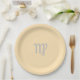 Papier Teller mit dem Virgo Zodiac Symbol in Peach Farbe ( FFE5B4 Hintergrund . Einfaches und trendiges Design von Alma Wad .