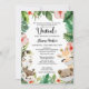 Feiern Sie die bevorstehende Ankunft Ihres wertvollen Babys mit dieser eleganten, schicken und hübschen "Virtual Baby Shower Invitation" mit niedlichen freundlichen Dschungelsafari-Tieren mit Masken auf wunderschönen tropischen Aquarellfloralen mit grünen Dschungelhintergrund Blätter Hintergrund. Sämtliche Texte sind so vorbereitet, dass Sie mit Ihrem Baby Duschdetails einfach und schnell personalisieren können.