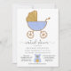 Virtual Baby Dusche Retro Carriage Glitzer Blau Einladung