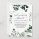Grüne Botanische Wasserfarbenfeder Brauerei Virtual Bridal Dusche Einladungen auf weißem Hintergrund - beinhaltet schöne und elegante Schrift Typografie mit modernen botanischen Blätter und Grün für die besondere Braut zu sein.