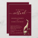 Mit dieser eleganten, virtuellen Einladung in Bordeaux und Gold kündigen Sie Ihre Online Hochzeitsfeier stilvoll an. Mit schicken Kalligrafien, minimalistischem Layout und einem modernen Skulpturenakzent ist diese Einladung perfekt für Hochzeiten im Zoom oder Live-Stream-Zeremonien. Ideal für Paare, die sich für ein abgelegenes, intimes oder reisefreies Feierformat entscheiden.
