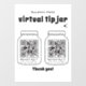 Dieses personalisierbare virtuelle Tipp-Krug ist ein vielseitiges Produkt, das Ihnen die Möglichkeit gibt, Ihre eigenen Tipp-Kollektionen individuell zu gestalten. Mit der Möglichkeit, Ihren Firmennamen und zwei QR-Codes aus Ihren bevorzugten Zahlungsapplikationen einzufügen, erhöht dieses Zeichen die Verlobung und Benutzerfreundlichkeit der Kunden. Der Tipp Jar eignet sich perfekt für Cafés, Künstler, Künstler und Dienstleister und wird zu einem nahtlosen digitalen Transaktionshub, der es Kunden ermöglicht, durch schnelle und bequeme Zahlungen Wertschätzung zu zeigen. Erhöhen Sie Ihre Marke, vereinfachen Sie Transaktionen und fördern Sie mit diesem individuell anpassbaren Tipp-Weiß-Zeichen ein Dankesgefühl. Alle Textstile, Farben und Größen können an Ihre Bedürfnisse angepasst werden. Wenn Sie Hilfe oder passende Artikel benötigen, zögern Sie bitte nicht, mich zu kontaktieren.