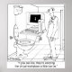 Eine Person in einer Toilette mit nur einer Tastatur und einem Monitor-Sprichwort: "Wenn du mich frage, tragen sie den virtuellen Arbeitsplatz etwas zu weit."