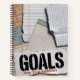 This artwork feels assembled with purpose, layering authentic textures of torn notebook paper, utilitarian graph paper, and a suggestive piece of a vintage travel map. Over this rich, tactile base, the defining word "GOALS" is imprinted with the force of a large, distressed rubber stamp, complete with uneven ink and raw edges. It’s a design that celebrates the imperfect, creative process of manifesting ideas.