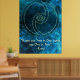 The symbol of the single eye emanates from clarity in its centered position. The geometric lines leave space for visions to arise. The art expressed by the design is a simple to use gazing meditation tool. The space within the geometric lines helps to stay tuned with the guidance of the intuitive inner voice. The art is a magnet for well-being and a everyday life enhancer for home and therapeutic/creative work spaces. Hand drawn and merged in mixed media, printed in lighter gold on blue smoky background.