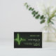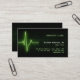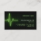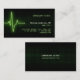 Kundengerechte berufliche Geschäftskartenschablone mit dem medizinischen Thema, das ein glühendes grünes Herzschlag-/Impulsmonitorsignal des Elektrokardiogramms kennzeichnet.