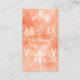 Eine Visitenkarte mit einem zauberhaften Kronleuchter, der vor einem weichen, peachischen Aquarellhintergrund aufgehängt ist - eine perfekte Verkörperung von Eleganz und Stil. Dieses einzigartige Design ist auf Innenarchitekten zugeschnitten, die bei jeder Einführung einen bleibenden Eindruck verlassen gewollt haben. Es ist eine ideale Karte für jeden Designer oder Hochzeitsplaner.