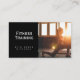 Mit dieser feinen und modernen Visitenkarte, die sich perfekt für Personal Trainer und Fitnessprofis eignet, heben Sie sich ab. Der schwarze Hintergrund und die kräftige, berufliche Schrift sorgen für ein kraftvolles Aussehen, das Ihre Hingabe zur Fitness widerspiegelt. Behalt das vorgestellte Foto oder personalisiere es selbst, um dein einzigartiges Angebot zu präsentieren.