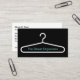 Trendige minimalistische Stil Schrank Organisation und Design Visitenkarte Online-Vorlage mit einer Kleiderbügel Grafik und Ihrem Geschäftsnamen auf der Vorderseite in einem Design können Sie anpassen online.