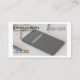 Eine Visitenkarte, die eine Brille, Scheckheft, Einzahlungsschein, Taschenrechner und zwei hundert Dollar Scheine zeigt. Dies kann für einen Finanzplaner oder jemanden verwendet werden, der die Schulden konsolidiert.