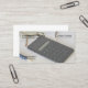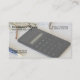 Eine Visitenkarte, die eine Brille, Scheckheft, Einzahlungsschein, Taschenrechner und zwei hundert Dollar Scheine zeigt. Dies kann für einen Finanzplaner oder jemanden verwendet werden, der die Schulden konsolidiert.