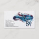Diese Visitenkarte zeichnet sich durch ein lebendiges und auffälliges Design aus, in dem fließende, bunte Haare mit einer beruflichen Schere verwoben sind. Die dynamische und künstlerische Darstellung erfasst das Wesen der kreativen und geschickten Frisur. Auf der rechten Seite der Karte werden Geschäftsinformationen in einem sauberen, strukturierten Format präsentiert, sodass die Kontaktdaten und Services leicht lesbar und auffindbar sind. Das Gesamtbild besticht durch Professionalität und künstlerischen Flair, der die hochwertige Dienstleistung widerspiegelt.