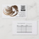 Diese ausgefeilte Visitenkarte zeichnet sich durch eine raffinierte und elegante Abbildung des Frauenprofils aus, das mit anmutig fließenden Haaren in einer reichen, goldbraunen Farbe versehen ist. Das minimalistische Design verströmt ein Gefühl von Luxus und Professionalität. Auf der rechten Seite werden die Geschäftsdetails übersichtlich und geordnet dargestellt, mit einem QR-Code für den einfachen Zugang zu zusätzlichen Informationen oder Online-Diensten. Die Ästhetik ist geschliffen und modern, was den hohen Ansprüchen und der Kompetenz des Friseurs entspricht.