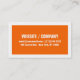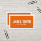 Kühne, grenzenlose Visitenkarte. Einfaches, starkes und wirkungsvolles Design. Große schlichte weiße Grenze und großer, fettgedruckter Text auf orangefarbenem Hintergrund.