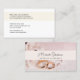 Diese Visitenkarte kombiniert beige und pastellrosa Farbtöne für eine Touch weiblicher Eleganz. Die Vorderseite zeigt eine anmutige Kalligraphie, während die Rückseite mit einem sauberen, modernen Schriftart für Klarheit ausgestattet ist. Ein Foto aus goldenen Ringen und eleganten Blumen fügt eine raffinierte, ruhige Touch hinzu und macht diese Karte zur perfekten Mischung aus Stil und Professionalität.