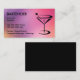 Barkeeper Visitenkartenvorlage in einem farbenfrohen und fett gestalteten Design präsentiert auf unserer abgerundeten Ecke großen Visitenkartenstock, der visuelle Wirkung verleiht. Zeigt ein Martini-Glas auf einem bunten abstrakten Hintergrund und Textbereich an, den Sie personalisieren und organisieren können. Für einen Barkeep, einen Event-Barkeeper oder einen Corporate-Service.